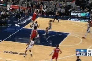 一飞冲天!凯肖恩-乔治抢断反击送抛传 惠特摩尔起飞空接单手暴扣
