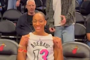 赛前,阿德巴约女友、本赛季WNBA总冠军并包揽DPOY、MVP和FMVP的阿贾·威尔逊身穿男友球衣现场观战,前后反穿专门露出阿德巴约的名字与号码。