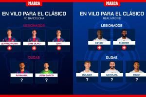 体育资讯10月17日讯 国际比赛日结束,联赛回归。本月月底西班牙国家德比便将打响,今日马卡盘点了国家德比可能伤缺的人员。巴萨:莱万,奥尔莫,加维确定伤缺;拉菲尼亚,霍安-加西亚成疑皇马:门迪,吕迪格确定伤缺;赫伊森、卡瓦哈尔、阿诺德成疑