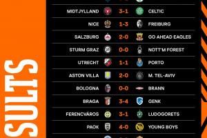 赛程过半!欧联积分榜:中日德兰全胜领跑,贝蒂斯第9、森林第23